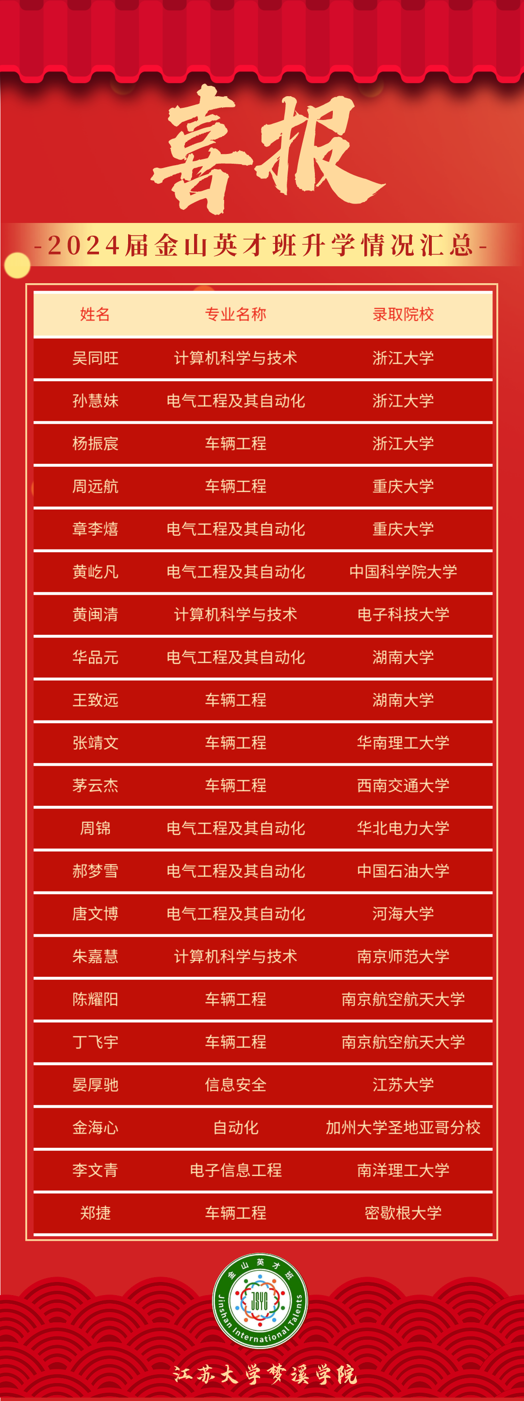 喜报|澳门威尼斯人娱乐城 2024届金山英才班升学情况汇总