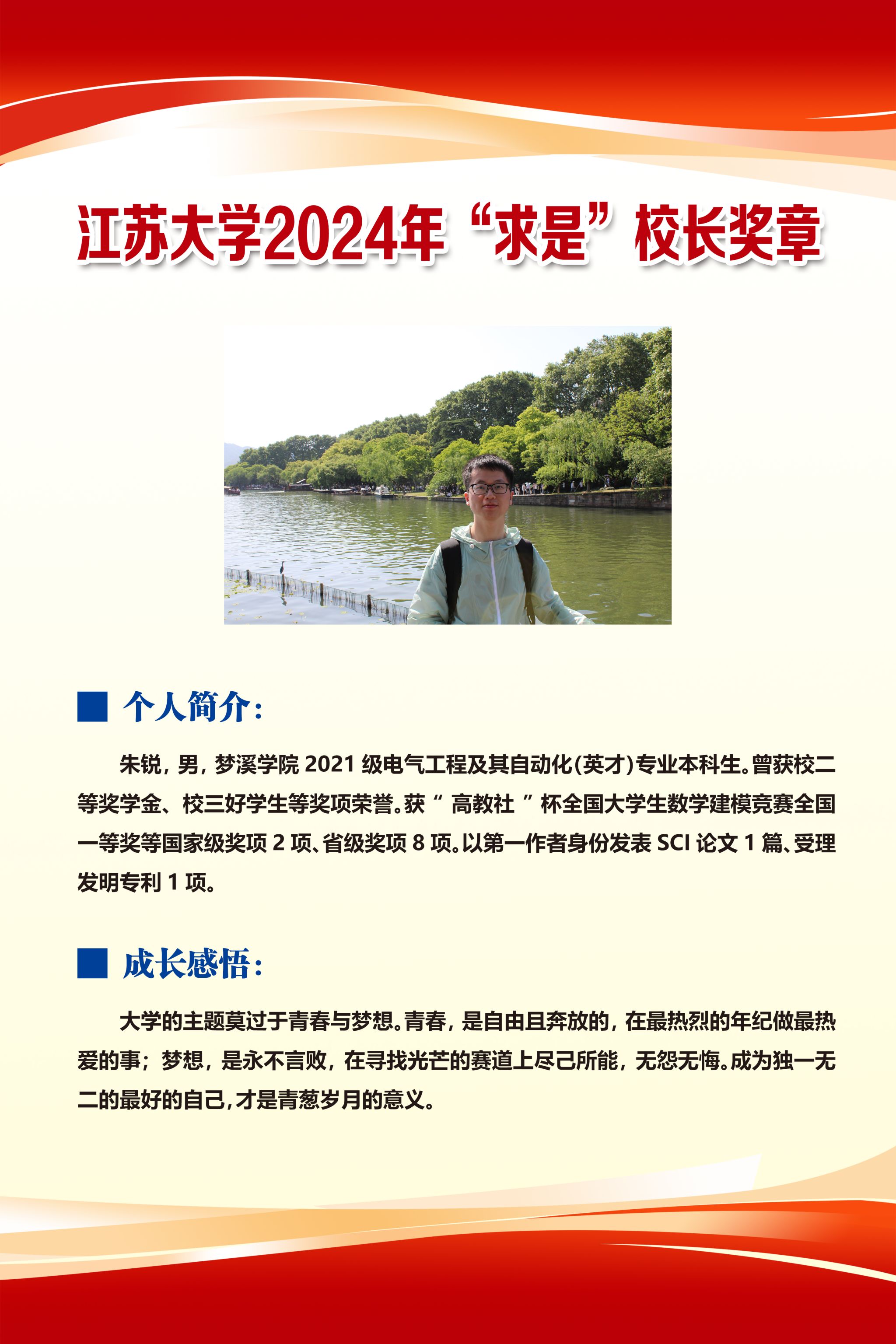 江苏大学2024年“求是”校长奖章——朱锐